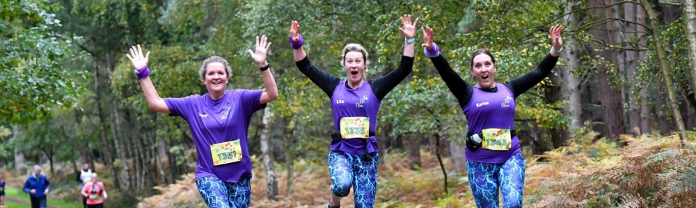 The 10k route is the same as well known 'The Longhorn' but in reverse. The 10 mile race is the 10k route with an extra 4 miles added through different parts of the ancient woodland. Half marathon is 2 laps of the 10k route with a pretty diversion on each lap to extend to distance. 30k complete 3 laps of 10k course. Marathon follow half marathon course.